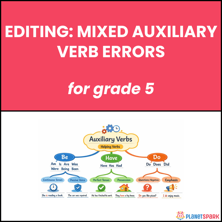 Class 5 English Worksheet on Auxiliary Verb Errors